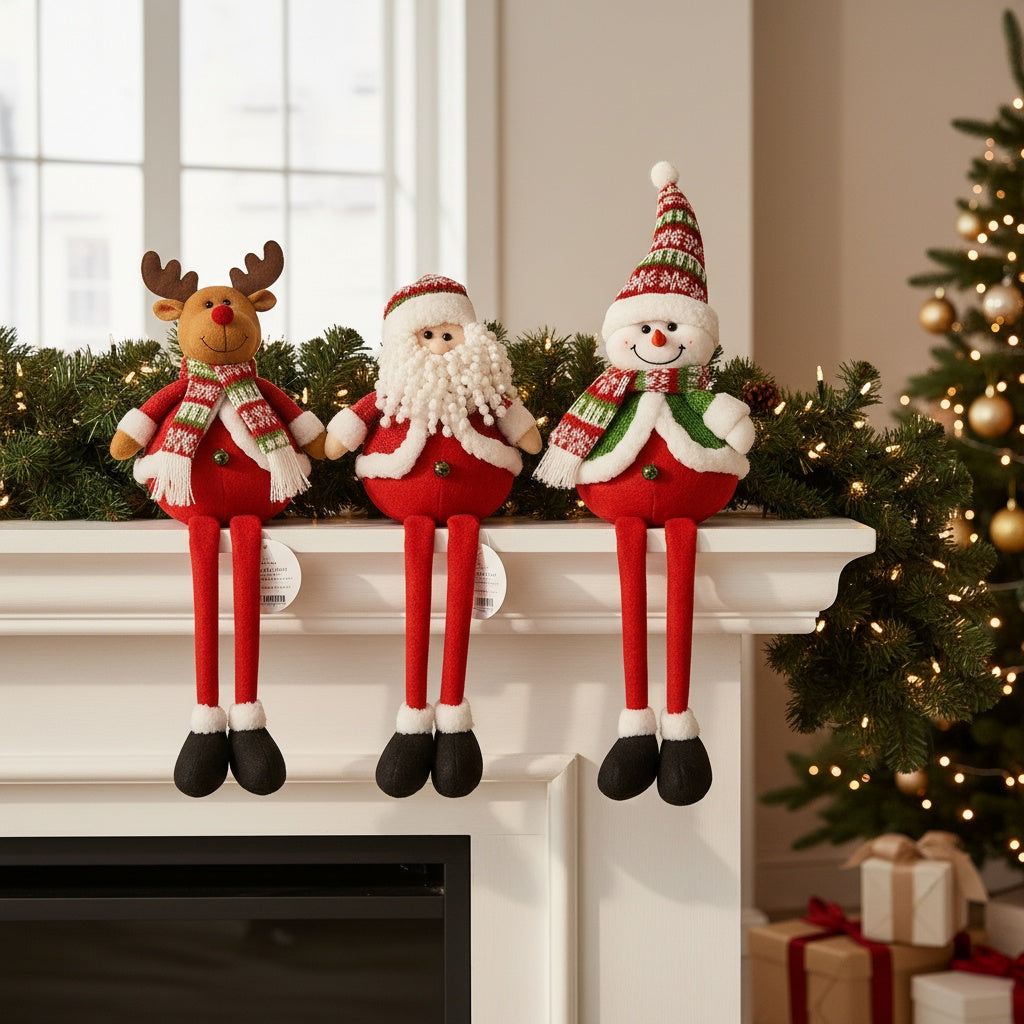Imagina la alegría de tu familia al ver a Papá Noel, el Reno y el Muñeco de Nieve con sus patas elásticas y flexibles, listos para sentarse en la repisa, abrazar un regalo o simplemente darle vida a tu sala. Su diseño único y su suave acabado tejido crean un ambiente acogedor y lleno de encanto.